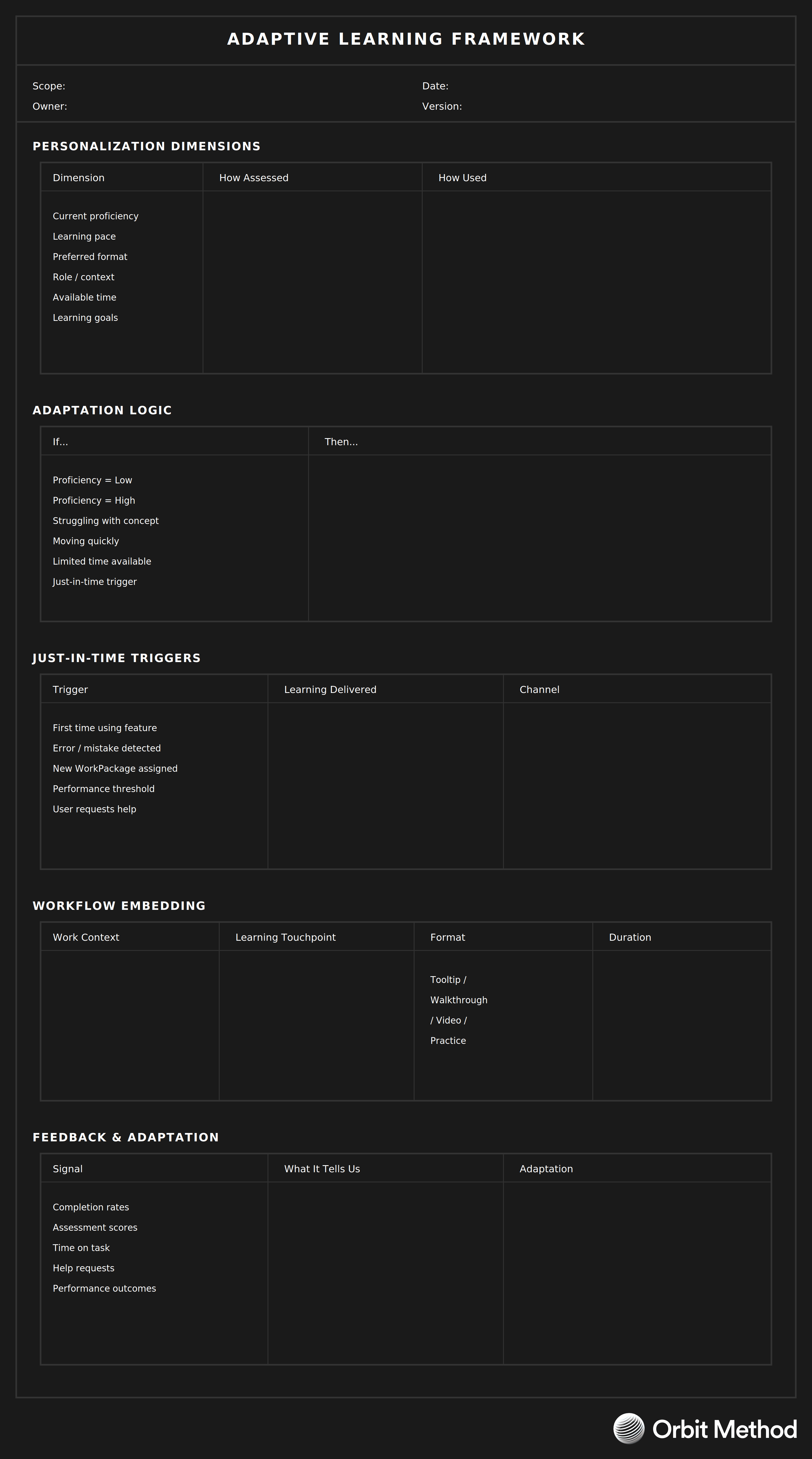 Static training doesn't work for dynamic work. This framework enables learning that meets people where they are, adapting to their proficiency, pace, and context.