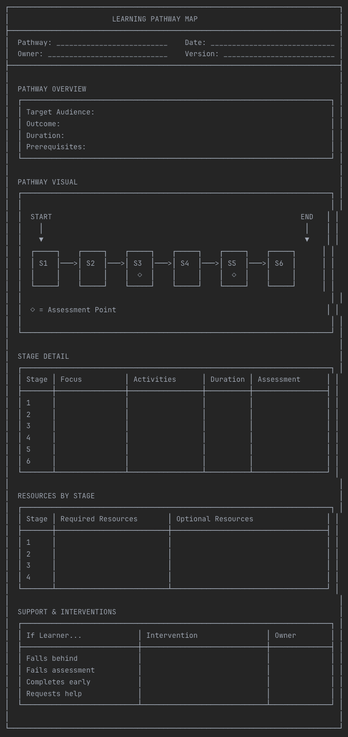 Learning isn't random. Pathways provide structure while allowing flexibility for individual pace and needs, guiding people through skill development journeys.