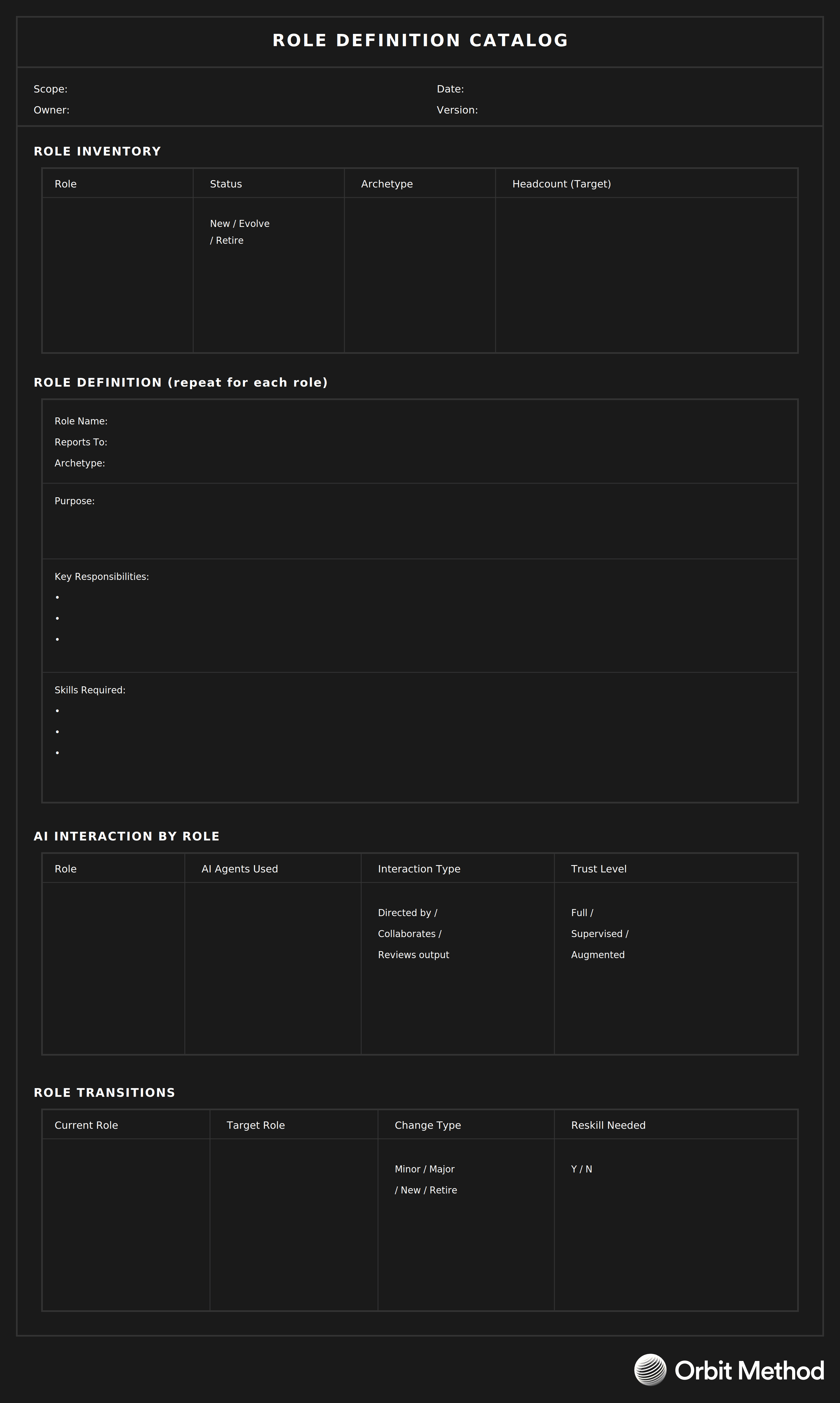 Purpose | Define future-state roles |