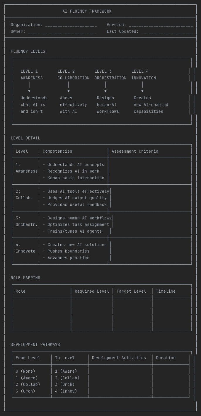 AI fluency isn't optional for the future of work. This framework defines what it means to be fluent in AI collaboration at different levels and how to develop it.