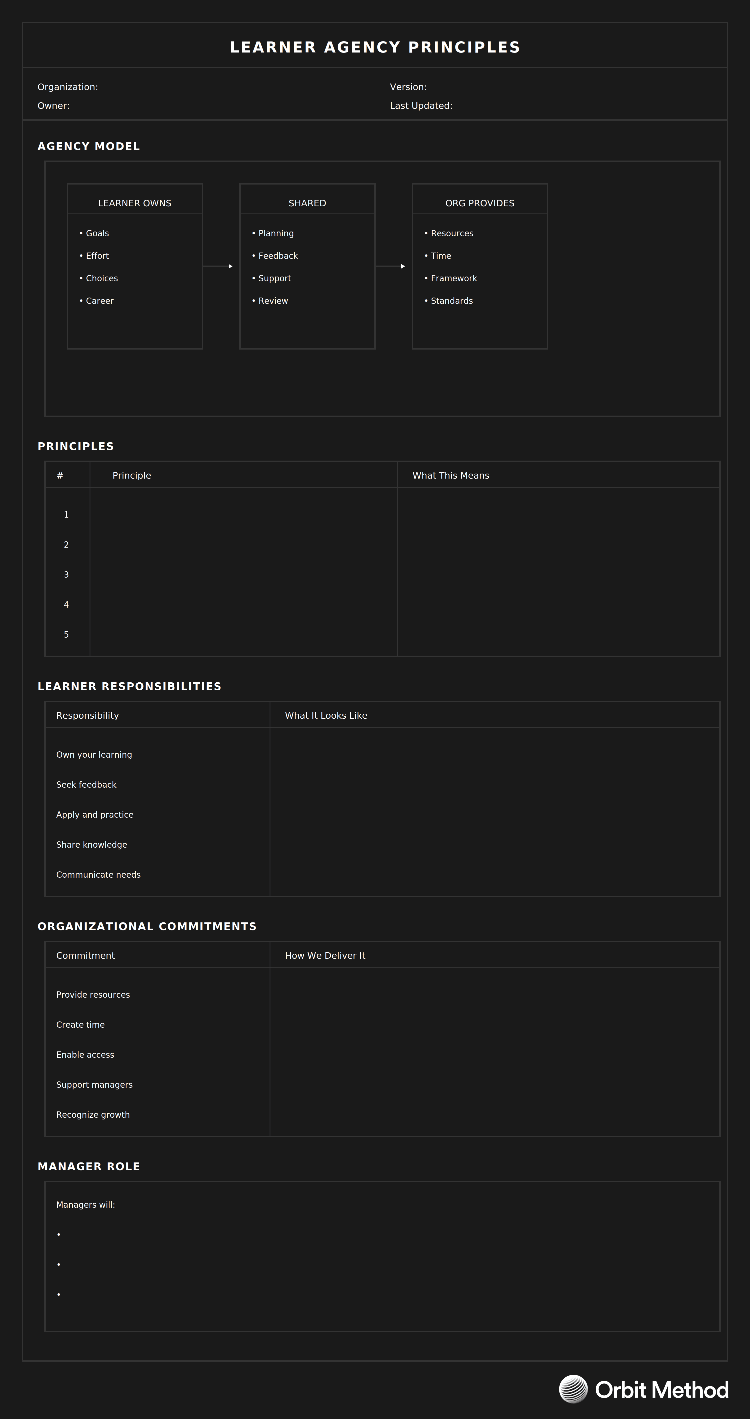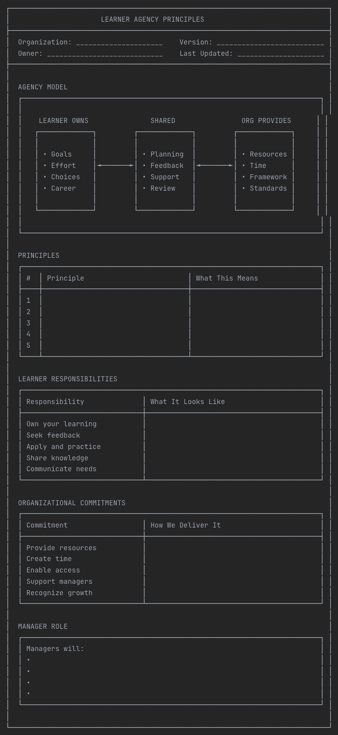 Learning works best when people take ownership. These principles clarify the balance between individual agency and organizational frameworks, empowering learners while providing needed support.